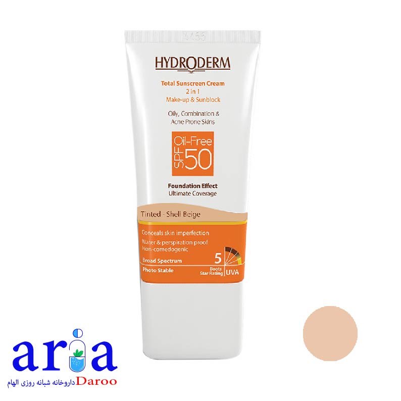 کرم ضدآفتاب SPF50 فاقد چربی با پوشش کرم پودری بژ صدفی هیدرودرم _HYDRODERM